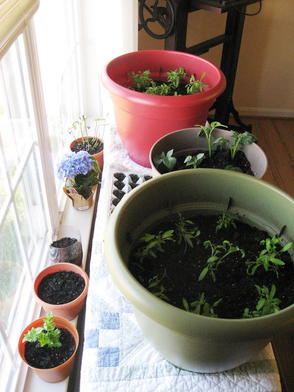 I am using my huge containers from my patio garden last year. They are now much more spread out and are very healthy plants. I have 15 total! :) Once they get bigger I am probably going to crack the eggs shells and separate the plants.